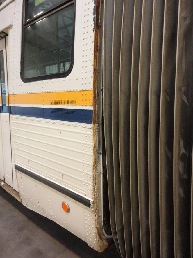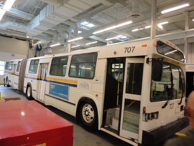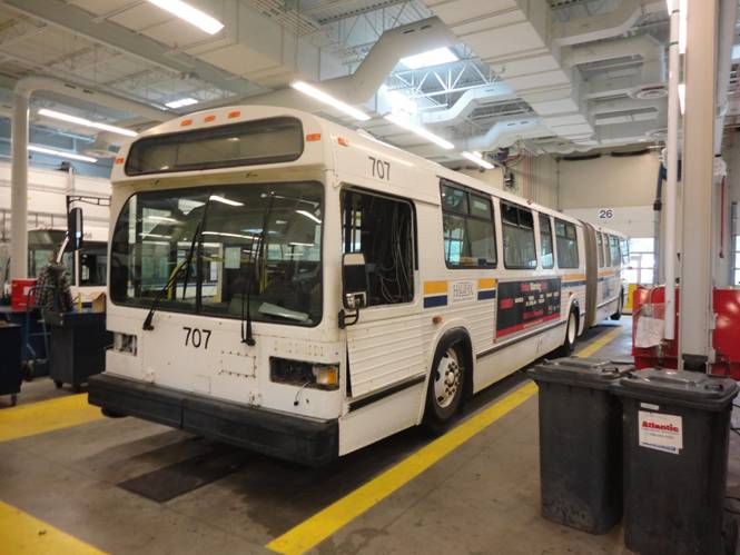 We then went inside the maintenance building where we saw LFS #988 having been retired due to an engine fire and retired Classic articulated #707. There were two other articulated Classics in the garage as well, but they weren't retired yet.