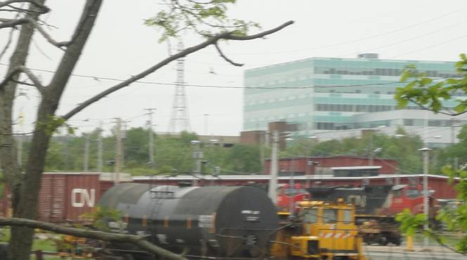 I waited for 709 to leave. When it left, I filmed it pulling away. I then caught a route 52 because I wanted to see the Titanic graves at Fairview Cemetery. I got off one stop too early and I had to ask directions, but I eventually found the cemetery. Along the way to the Titanic graves, I photographed some CN locomotives in a nearby yard.