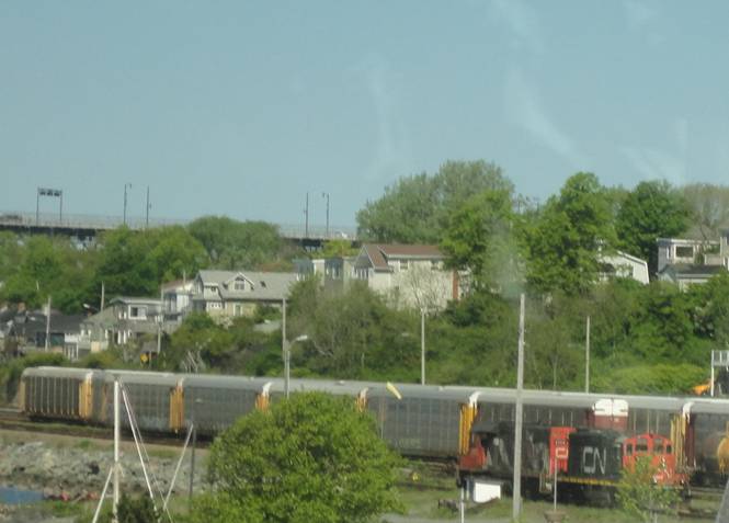 I got up shortly after 9:00 am and got dressed I went downstairs for breakfast. After breakfast, I went back upstairs and finished packing. I went downstairs and checked our around 10:00 am. I walked over to the ferry terminal. I photographed the power from the CN switch job from the previous night parked in the yard.