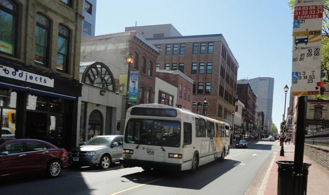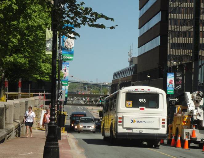 We soon arrived at the Halifax ferry terminal. I got off and walked three blocks to Barrington Street to wait for a bus to the VIA station. While waiting, I photographed Classic #958 in service on route 20.