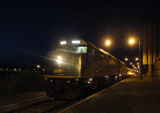 I then walked over to near the Tim Horton's and photographed the locomotives of the Ocean. The train was led by 6418 and had 6448 trailing. I photographed the front of the train.