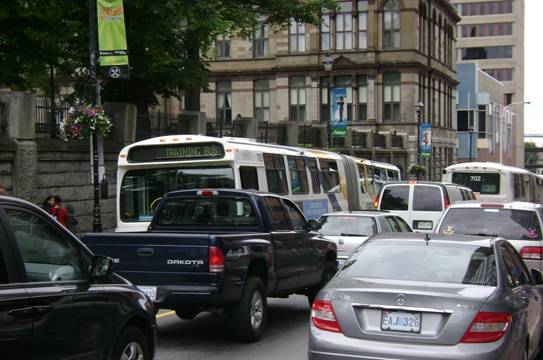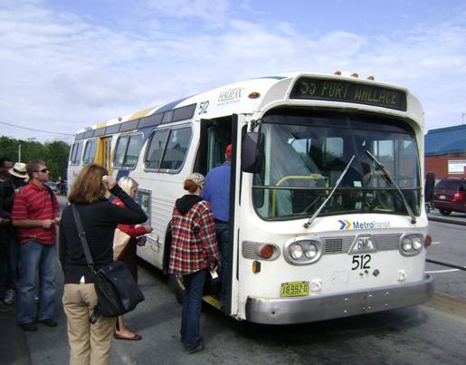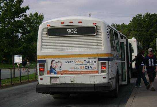 Meantime, I saw a fishbowl on the opposite side of the harbour. Mike and I walked to his car which is a Ford Crown Victoria that used to be a police interceptor. Shortly after we left, I saw a fishbowl pass by heading west. Mike and I chased it to the Bridge Terminal where I said goodbye to Mike and ran to the fishbowl. It was #512, the fishbowl I rode last time I was in Halifax, but it’s much better than not riding a fishbowl. I photographed 512 before I got on.