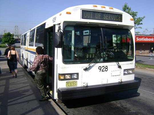 I didn’t have to wait long. GM Classic #928 showed up and I rode back to the Bridge terminal where the bus went out of service. I photographed it and then filmed it leaving.
