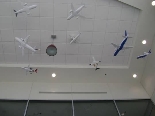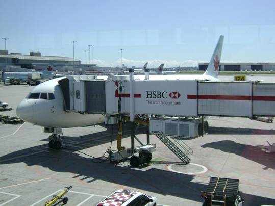 The plane was soon parked at the gate. I got up. When I walked through the first class section, I filmed it. It had seats that could recline flat which would be an asset for long distance flights. I went inside the terminal and photographed my plane.