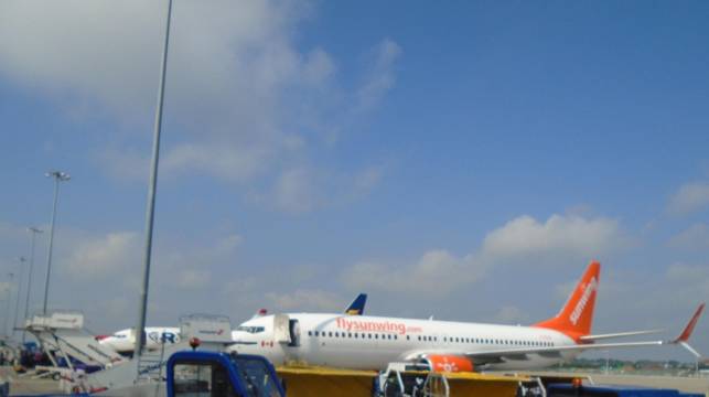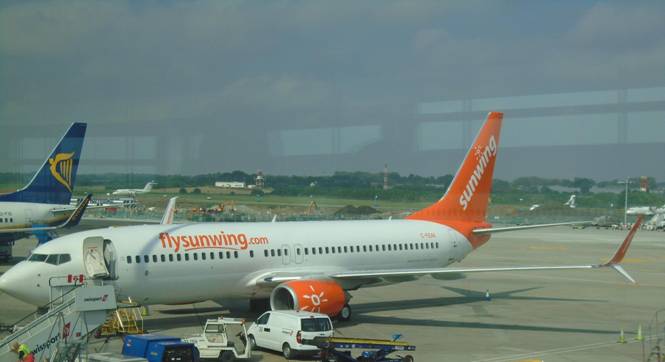 I then entered the terminal and took one more photo of the Ryanair 737 and the Sunwing 737.