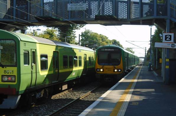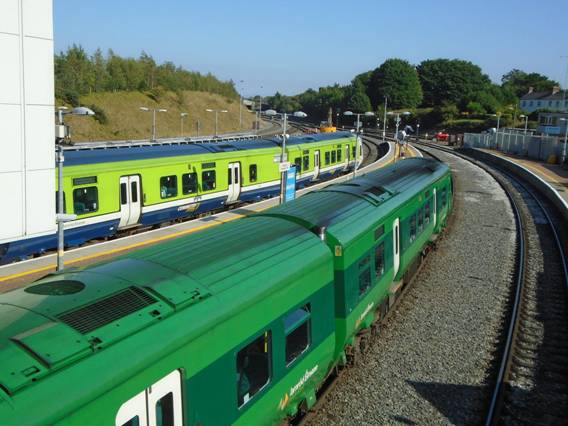 Des and I boarded the last car and we departed. We rode the train to Drogheda. On the way, we passed a long distance train heading towards Dublin. We soon arrived at Drogheda. I got off and took some photos.