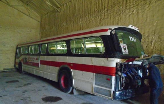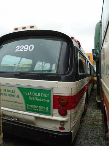 We hit the highway. We headed to the maintenance yard Gary and I stopped at last year after I got to ride #2290. A lot of the club's buses were there including TTC #2290. However, #2290 was boxed in. I was able to photograph it though.