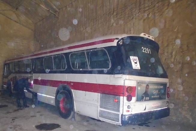 Des and Gary had to stop somewhere for some paperwork. It was in an industrial area. I saw there were two buses parked back there. I photographed them.