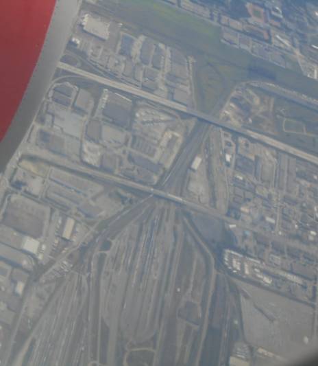 After awhile, I could tell we were getting close. I saw Buttonville airport in Richmond Hill where Cessna type aircraft take off from. I was distracted at a point and missed where my house was, but I could see the area where I worked. When we flew over CN’s Macmillan Yard, I photographed it.