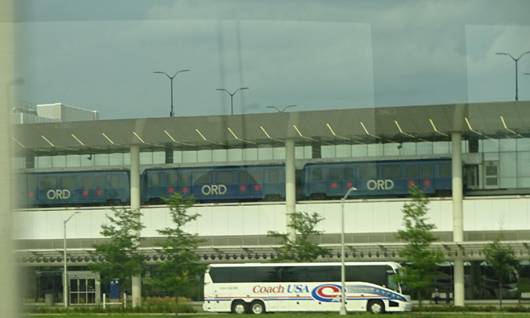on and the bus soon departed. I attempted to photograph the O’Hare monorail.