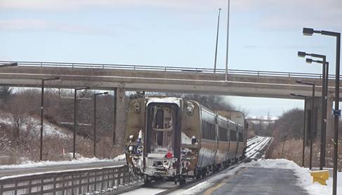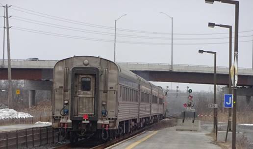 The train passed through Port Hope. We slowed down west of Port Hope. We picked up speed again.
