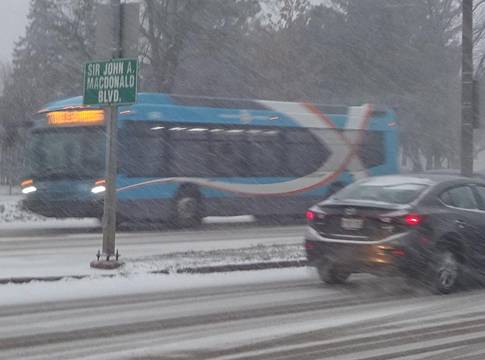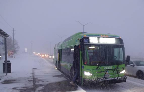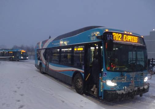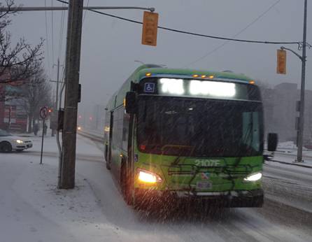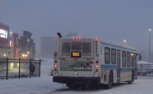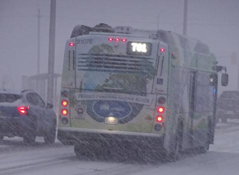 I headed towards the stop. It was snowing pretty heavily. I photographed some buses while waiting for the electric bus.