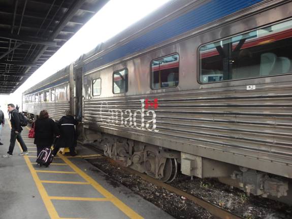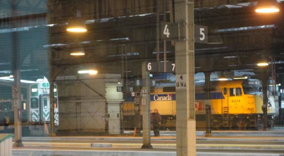 I then walked around a bit before I bought a coke from the McDonald's in Union Station and then lined up for train 85. Boarding began just before 10:40 am. I was seated in Hep1 coach #8134, an ex Amtrak coach. Train 85 is what became of the Canadian section of Amtrak's International.