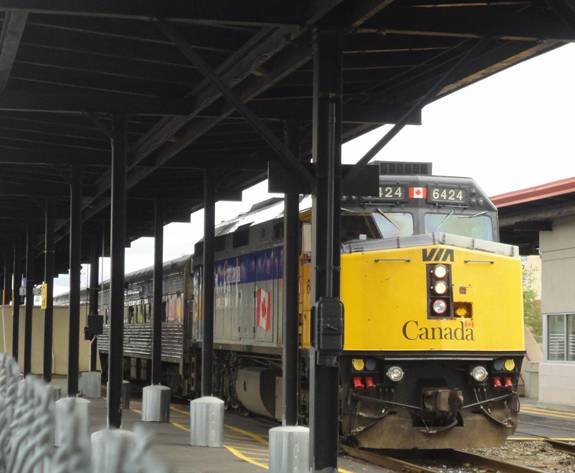 Today, trains 85 and 88 typically run with a locomotive, a Hep1 coach and a Hep2 coach making them VIA's shortest non-RDC trains. After I boarded the train, I saw that the window seats were taken so I sat down in an aisle seat on the left hand side of the train. The conductor announced train 85 was sold out.