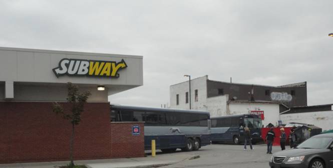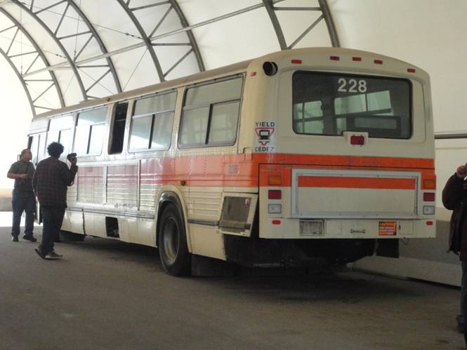 We got back on the buses and went two blocks west to the Greyhound station where more people joined the charter. I photographed the buses.