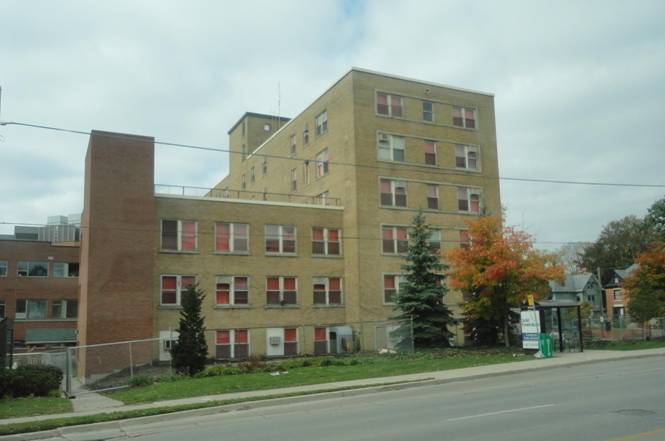 We passed by St. Joseph Hospital and the driver pointed out a smaller medical centre across the street which was going to be demolished in the future. I photographed it.