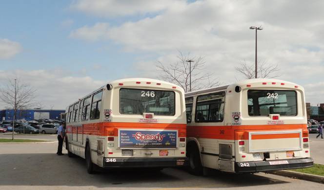 Our second charter bus showed up: Classic 242 which was also in the old livery. I photographed it with the three other Classics.