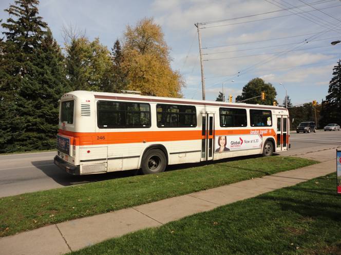Classic #246 would go to Argyle Mall. I boarded it and we headed off. We got to Argyle Mall a few minutes later. After we got off the bus, I filmed it pulling away.