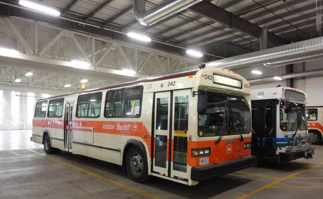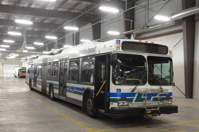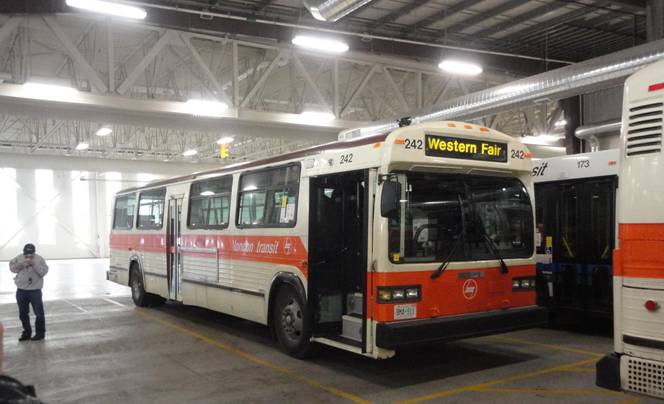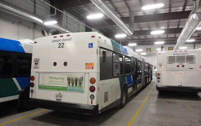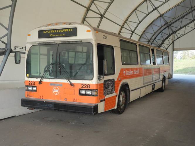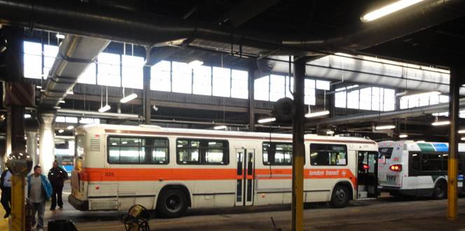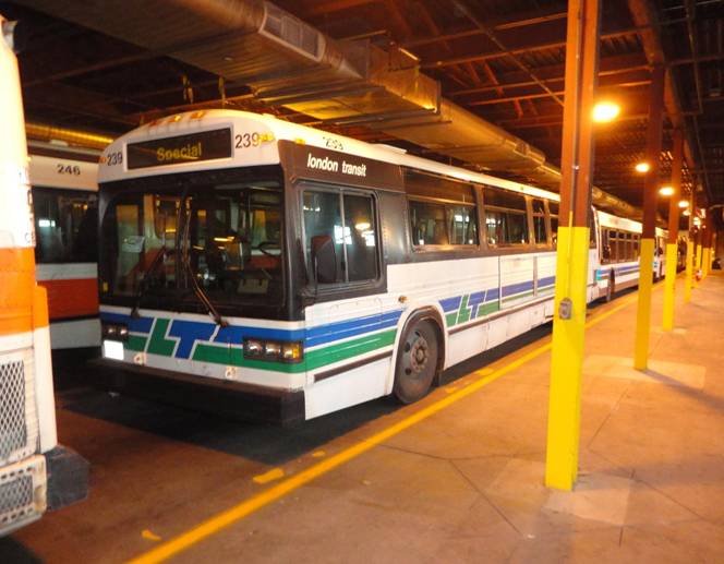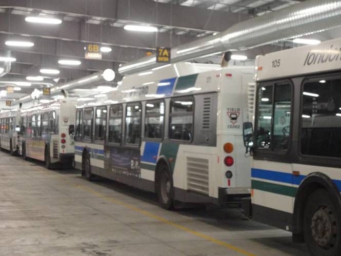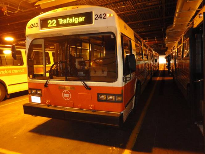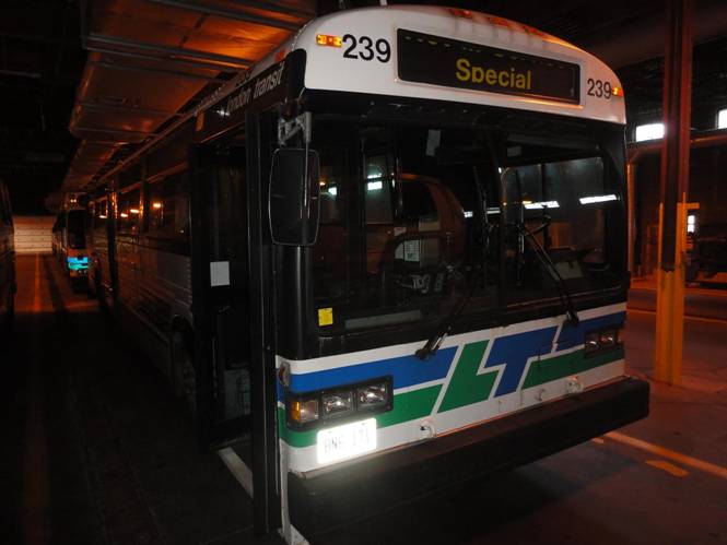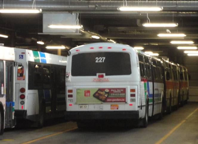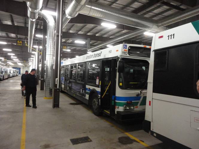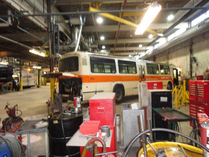 The EZ-rider was than moved back into the garage. The supervisor gave us a tour of the maintenance area. We took some photos. We were told that London Transit has some buses on order including three D60LFrs.