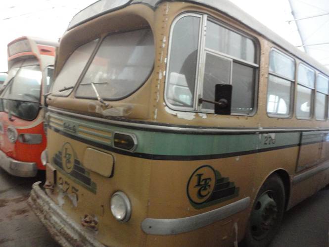 I noticed the right front turn signal on Classic #242 was cracked and there was some water in the turn signal. It still worked though. After awhile, we got back on the buses and we went inside one of the storage sheds for buses. We saw one of only two Classics to have been painted in London Transit's new livery. It was parked behind Classic #243 which I rode the day before. We got off and took some photos.