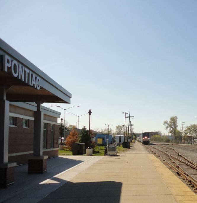 I took another picture of the equipment that would be my train 353 and the Pontiac Amtrak station.