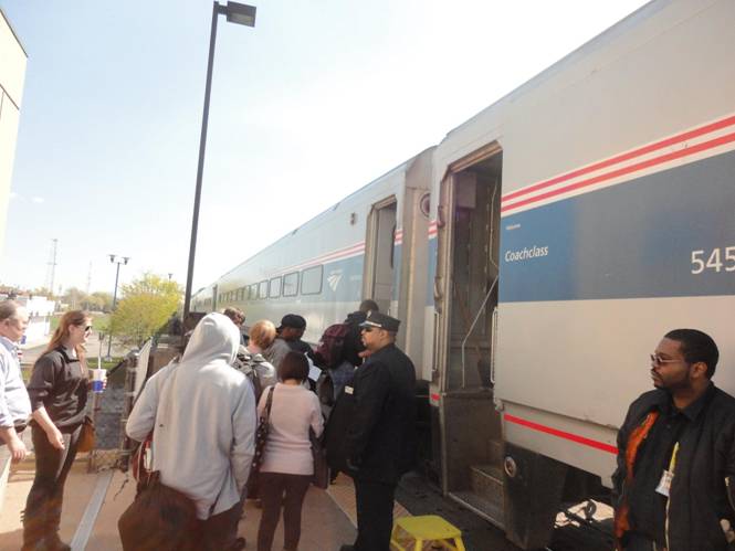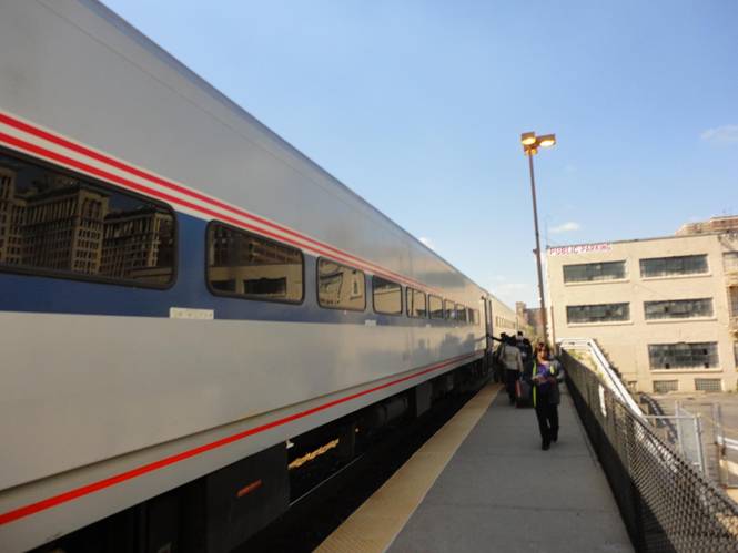 I then walked back to the Amtrak station and worked on this report some more. I then went out onto the platform and watched the train waiting for it to move to the platform. 8 minutes before departure, the train was moved to the station platform. I filmed the train as it was moved to the platform and then photographed it.
