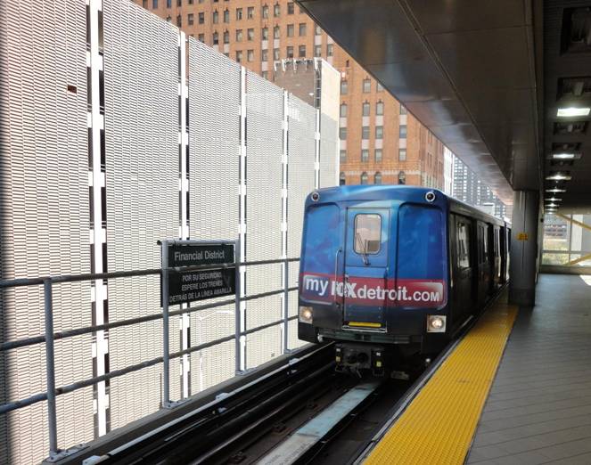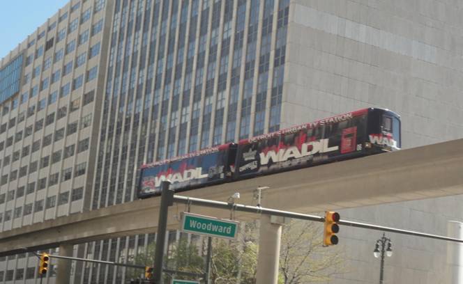 I got off the RTS at the same place I got off the 53 bus and again walked to the Financial District people mover station and paid $0.75 to get on. I photographed the next train to arrive.
