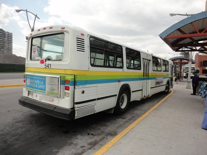 I filmed 541 pulling away. As it pulled away, Nova LFS #553 showed up. If you read my Washington-Lancaster trip, you may recall that 553 was the first Nova LFS I rode back in 1998 having taken three rides when I first visited Windsor. It looked strange to my parents. I also rode 553 on the tunnel bus back on my Washington-Lancaster trip as well. Needless to say, I photographed it.