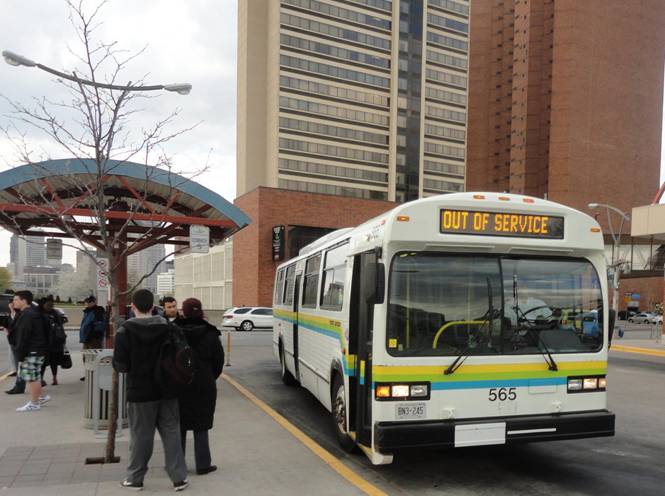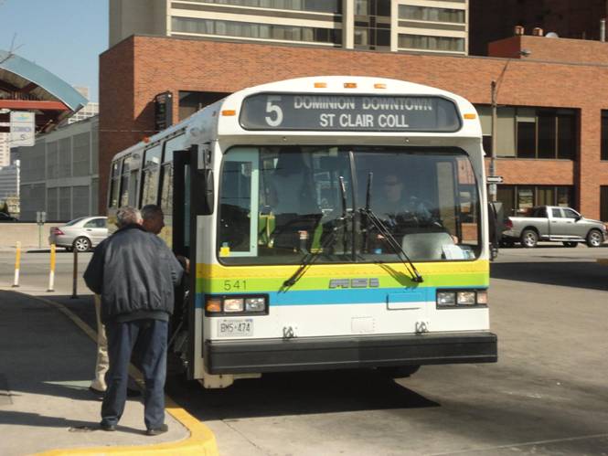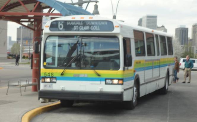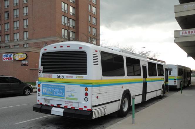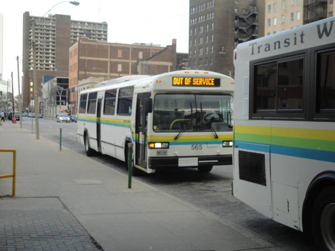 I then walked to the bus terminal. I thought of riding a Nova LFS on route 8 to Windsor's airport, but Classic 565 arrived. Unfortunately, 565 went out of service, but I got some pictures of it.