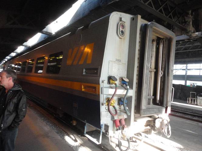 As we passed VIA's Toronto Maintenance Centre, I filmed it. I saw three Park cars in the yard, five Renn cars including 4 sleepers, lounge car Glenfraser, and one of the six ex VIA RDCs had been moved. VIA train 75 passed, but I was unable to film it.