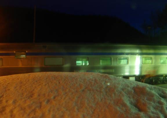 After dinner, I went into the dome. Downstairs, they showed the movie Marie Antoinette, which I wasn’t interested in seeing. At one point after dark, VIA train #27 passed us.