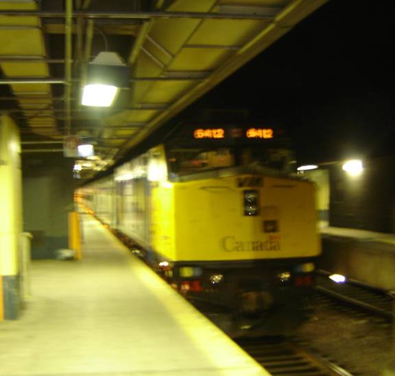 I then changed my digital camera’s batteries. While I was getting the new ones, I missed filming Amtrak’s Adirondack. We soon arrived into Montreal two minutes late; not to shabby! As we arrived, I filmed an inbound AMT commuter train. After, I got off and took some pictures of the Ocean and the consist of train 57 which I would ride to Toronto. Leading train 57 was F40PH-2 #6412. That unit was on the Canadian on my last trip as well as on the Budd Ocean I rode last year.