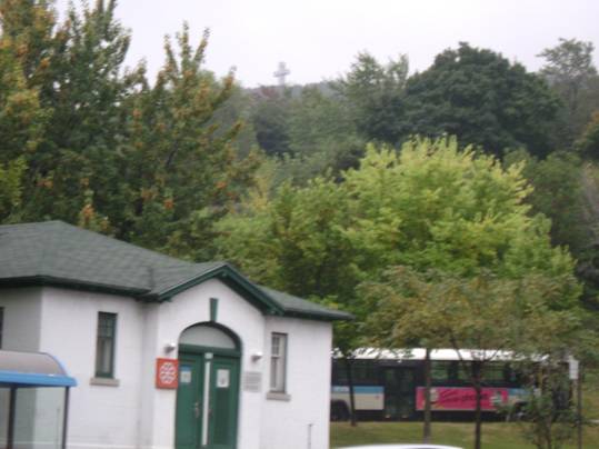 I got my wake up call and got up and got dressed. I had breakfast and finished packing. I then checked out of my hotel. When I left, I saw I had just missed a 12-000 series Classic which I was unable to photograph. While I was waiting for the next bus I photographed a 13-000 series Classic with the famous cross in the background.