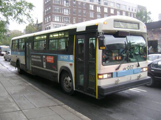 I saw the next bus coming was a Nova LFS. I also saw it was followed by a Classic. I let the LFS pass because it was full and waited for the Classic hoping in the off chance it was 60-013, but it was really STM 14-057. I rode it to Place-Des-Arts Metro station and got off and photographed it.