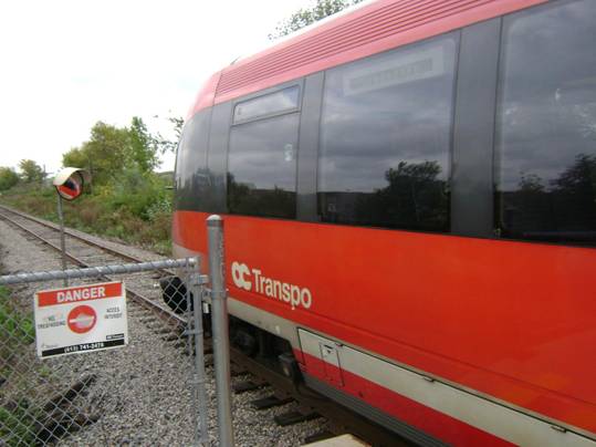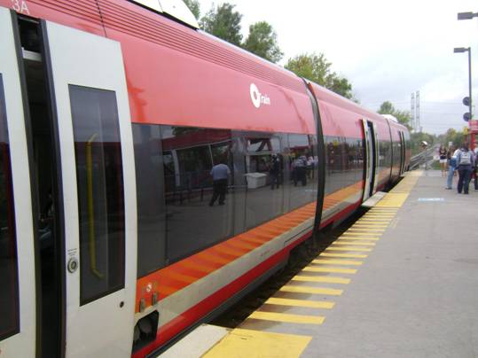 The bus soon arrived and I got off and walked over to the O-Train platform. The next train was due in 10 minutes. As the train arrived, I photographed it.