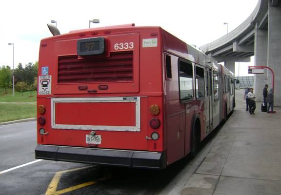 I then filmed the train pulling away. I then left to catch a route 97 bus to the airport. There was already at the station. I ran and caught it. It was a fast ride to the airport. When I got there, I photographed the bus.
