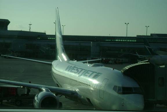 Finally, the plane that I would be flying home on arrived at the gate. I photographed it. I would be flying home on a Boeing 737-800. Westjet currently operates the 737-600, 737-700, and 737-800.