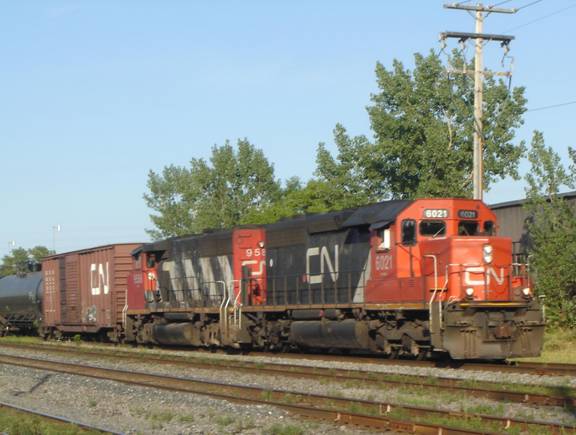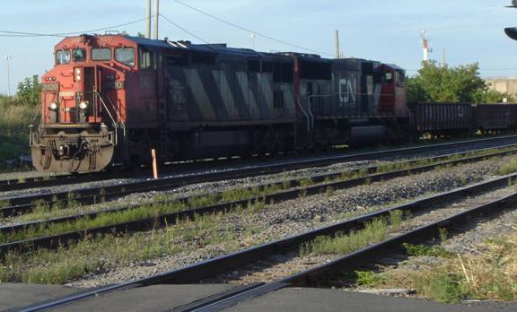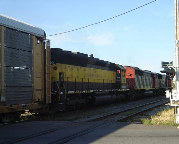 I crossed the tracks. A few minutes later, a CN freight passed. The train had three engines, including a Montana Rail Link SD45 that was still in the NYS&W livery.