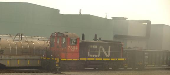 As we passed the big steel plant in Hamilton, I photographed CN end cab switcher #7304.