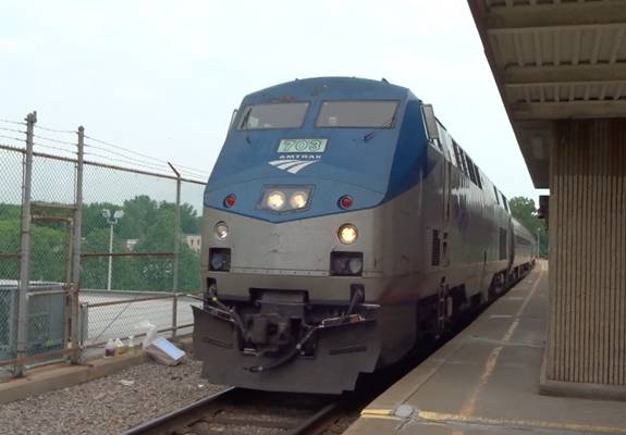 I saw Amtrak train #63 pulling in led by P32AC-DM #704; the first overhauled P32AC-DM to have been painted in the phase 3 livery. I photographed the train and filmed it pulling in.