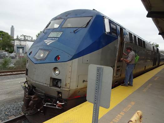 We were soon approaching Schenectady. I readied my stuff in preparation to get off. Train #64 arrived into Schenectady 13 minutes early! I got off and photographed the train.