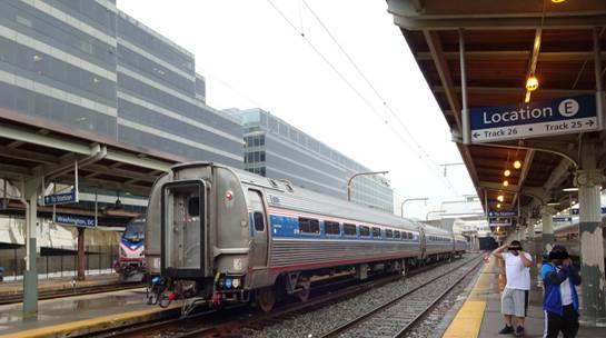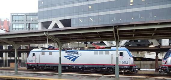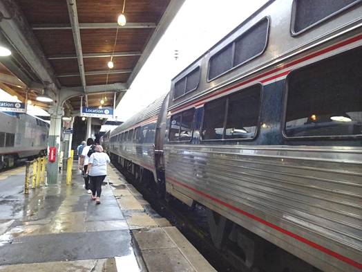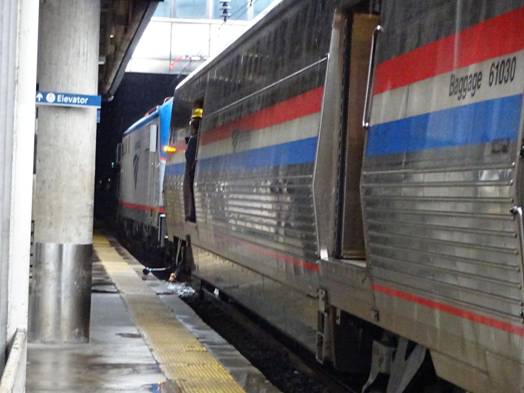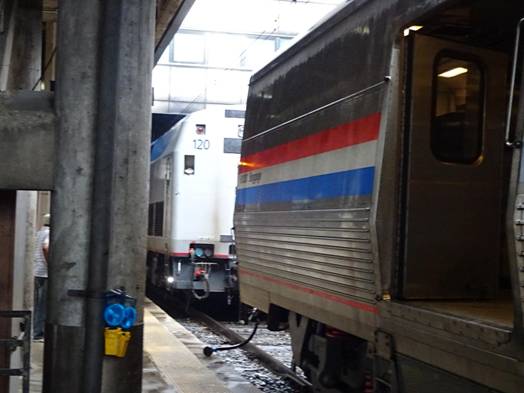 When we passed the Amtrak yard in Washington, I saw P42 #42; the Veterans unit which participated at Streamliners at Spencer; just before #611's restoration began. As we pulled into Union Station, I saw it was still raining. We soon stopped.