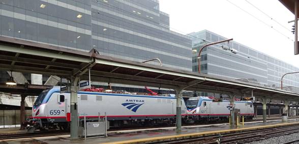 I had now managed to see all the units on Amtrak's roster presently repainted into Phase 3. The train stopped in Philadelphia. We departed and crossed into the state of Delaware. Outside of Wilmington, I filmed Amtrak's Bear, Delaware shops. I noticed stored P40 #828 in the Phase 4 livery, a retired HHP-8 and some retired AEM-7 electrics. A few weeks from now, Amtrak is planning a farewell to the AEM-7 excursion from Washington DC to Philadelphia and back. I won't be able to attend because it's too close to this trip. Maybe if I had made the train last year, I would have.