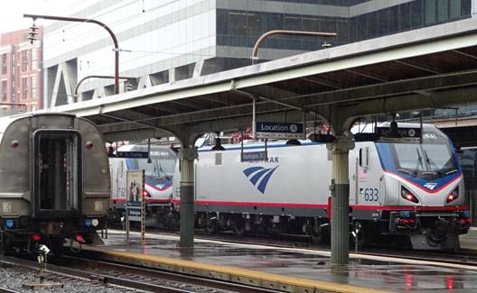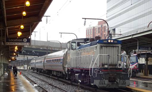 I saw Amtrak switcher #533 pulling in with three Amfleet 1 coaches. I photographed that movement.