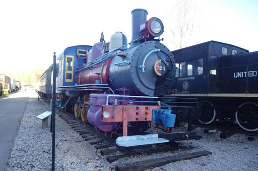 I then photographed Georgia Railroad steam locomotive #724 whose right side is painted in many colours.