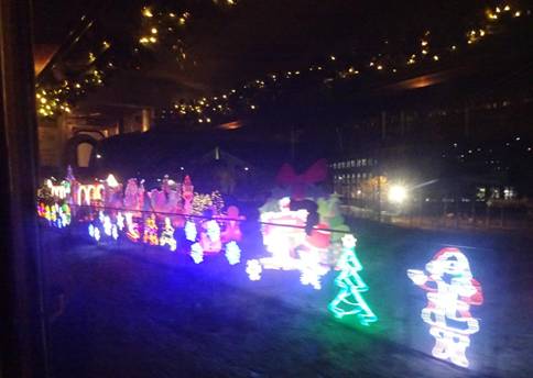 We branched off from where Amtrak uses and went north along a different line. We stopped by a light display which was supposed to be the “North Pole”. I took some photos from the train.