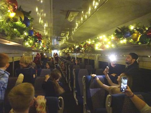 At one point “Santa” came into the coach and passed out candy. Other passengers and I took photos.