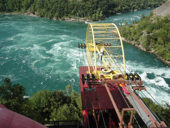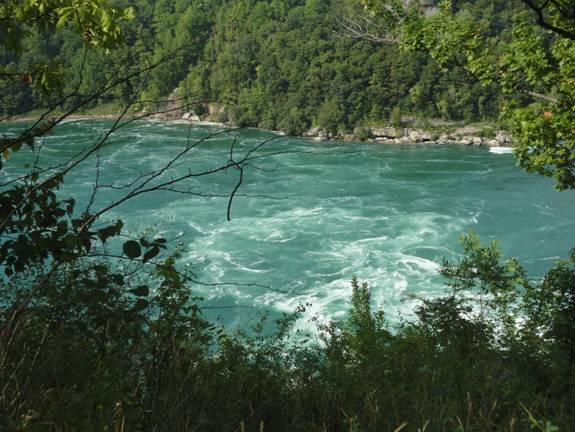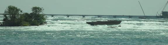We saw some ex GO Transit buses as we drove down River Road. We then drove by the falls. I took some photos of the falls and an old barge that was stuck right above them. The barge has been there for almost 100 years. It got there after it broke free from a tugboat further up river. There were two men on board who thought they were going to die as the barge drifted into the rapids and towards the falls before it got stuck on some rocks 760 meters from the brink of the falls. They were on the barge overnight before they were rescued.