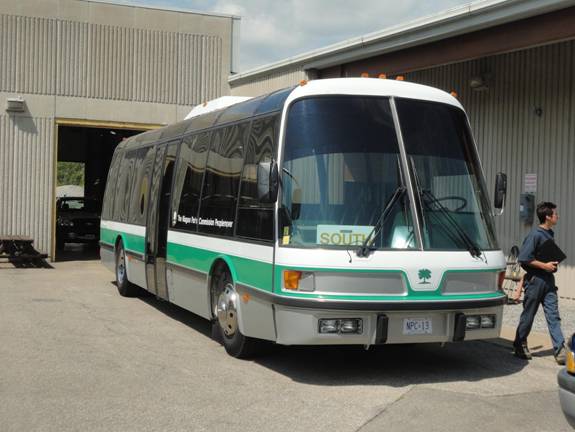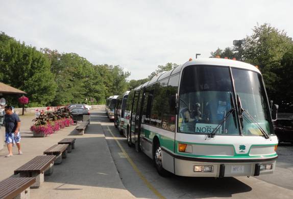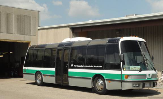 The Niagara Parks Commission is buying some buses from Nova including 9 articulated buses and two 40 foot LFSes. We then headed out and went to the southern most people mover station and photographed our bus with the next people mover bus and trailer.