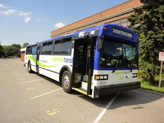This was where we were to have our group photo. Moments after, Niagara Falls Transit Orion 5 #2266 passed.